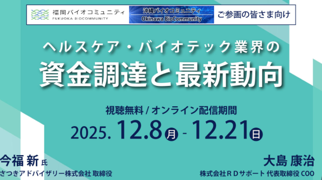 【福岡バイオコミュニティ会員限定】 バイオテックスタートアップにおける資金調達の基礎と最新動向